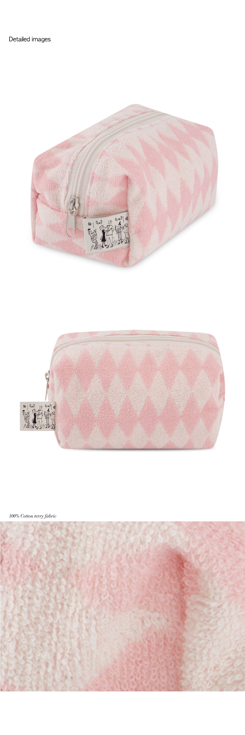 Description 다이아몬드 패턴의 테리 소재와 은은하게 포인트 되는 핑크 컬러 조합이 매력적인 파우치 입니다. 전체적으로 부드럽고 유연한 소재감을 느낄 수 있으며, 은은한 광택감이 흐르는 생활 방수 안감 소재를 사용하여 고급스러움을 더했습니다. 왼쪽 하단의 홈더스 시그니쳐 핸드드로잉 직조라벨로 포인트를 주었으며, 내부에는 홈더스 로고라벨이 부착되어 있습니다. S, M 두 가지 사이즈로 제작 되었으며 모두 넉넉한 수납력을 자랑하여 기호에 맞게 사용 가능합니다. Diamond terry pouch Pink로 여러분의 소중한 소지품을 보관 해 보세요.
