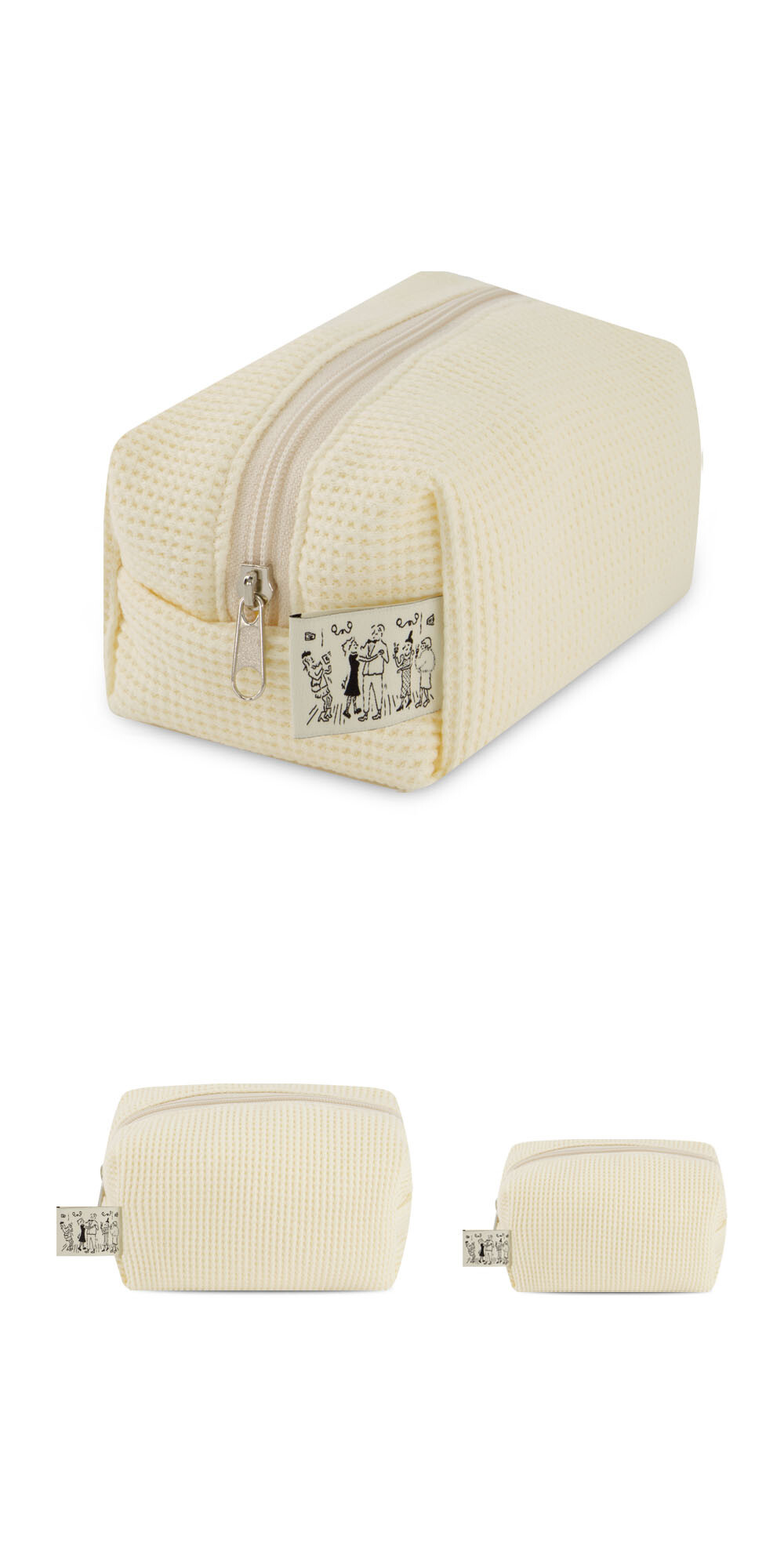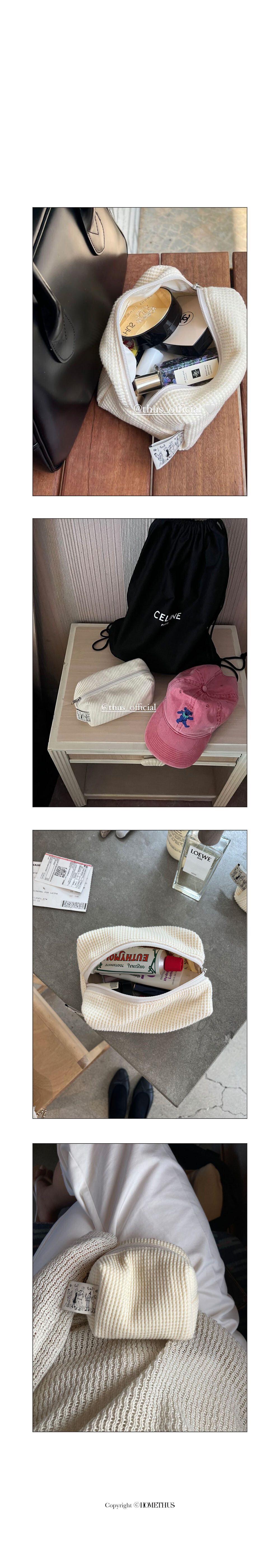 입체적인 질감의 와플 텍스쳐 코튼 소재와 버터 컬러 조합이 매력적인 파우치 입니다.