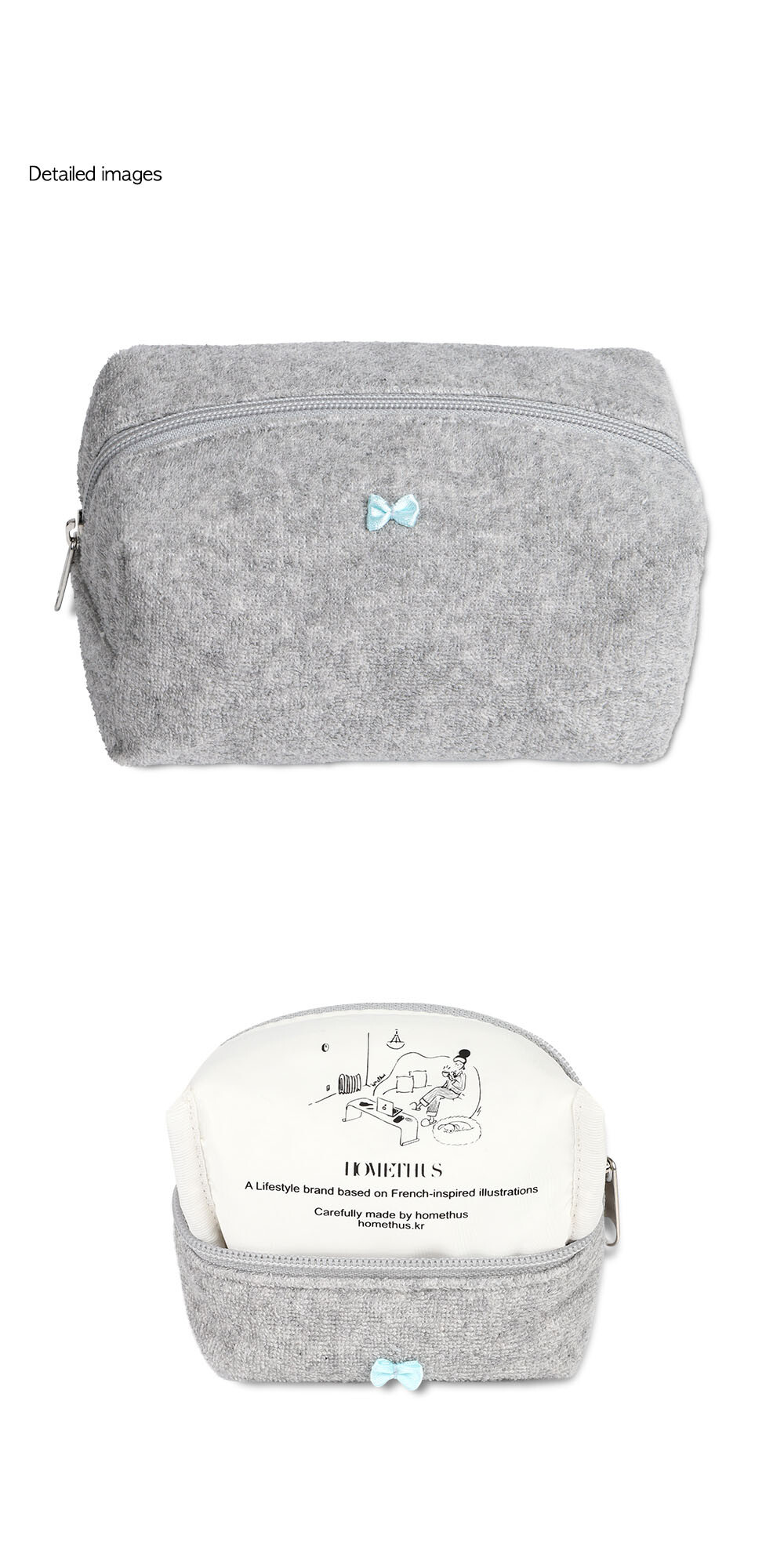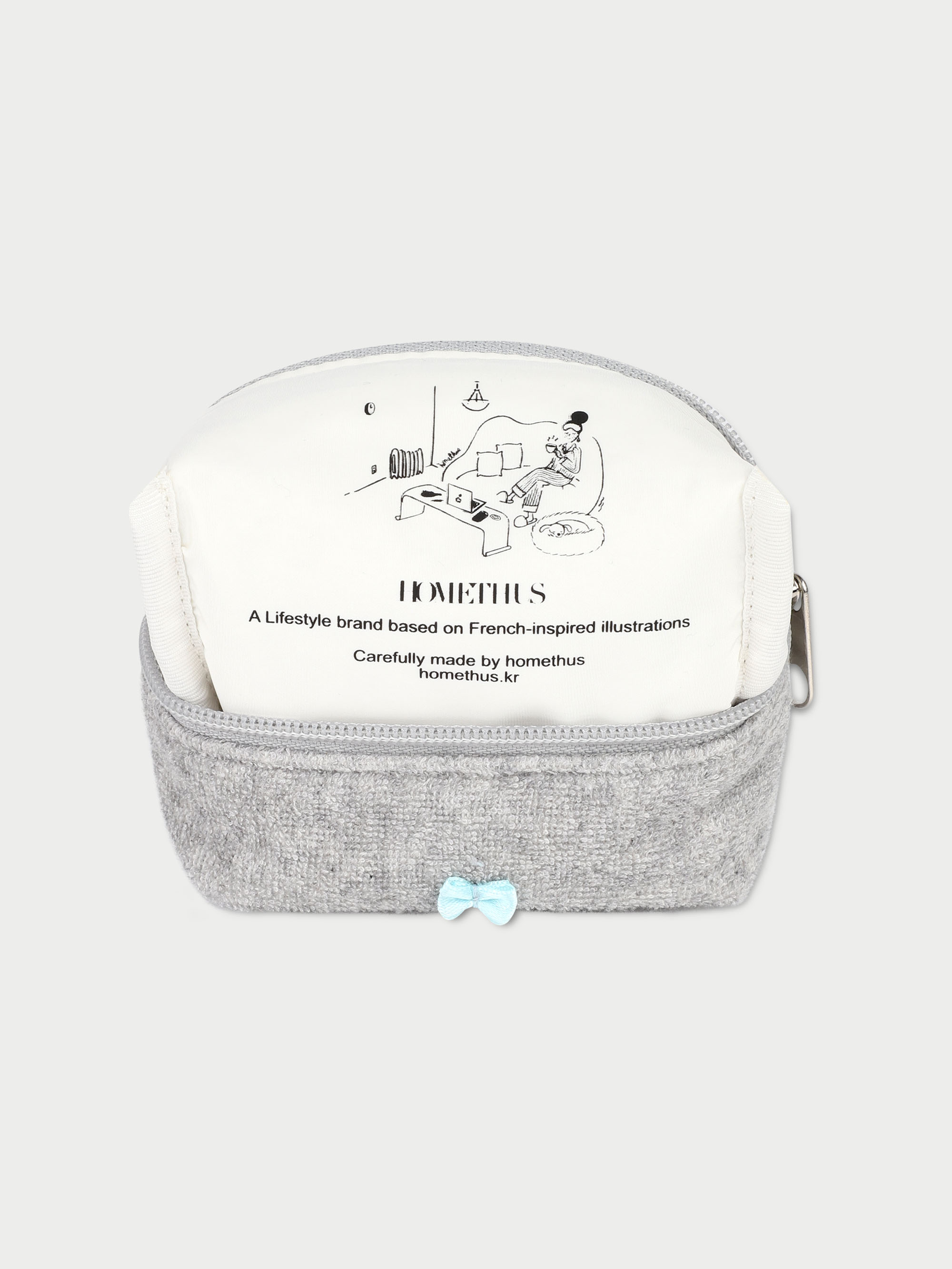 Description 은은한 라이트 그레이 색상에 하늘색 미니 리본 장식 포인트의 조합이 매력적인 파우치 입니다. 타올처럼 부드럽고 폭신한 테리 소재감을 느낄 수 있으며, 은은한 광택감이 흐르는 생활 방수 안감 소재를 사용하여 고급스러움을 더했습니다. 안감에 홈더스 시그니쳐 일러스트 로고 프린팅을 하여 홈더스만의 디테일을 엿볼 수 있습니다. S, M 두 가지 사이즈로 제작 되었으며 모두 넉넉한 수납력을 자랑하여 기호에 맞게 사용 가능합니다.